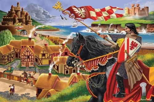 -. Feature : The fleet is in the harbor, the knights are practicing for their next joust and pennants are flying / 2' x 3' when complete / Features 24 extra-thick pieces that are 20% thicker than the competition's / Its easy-clean surface keeps puzzle looking new / Exceptional quality and value