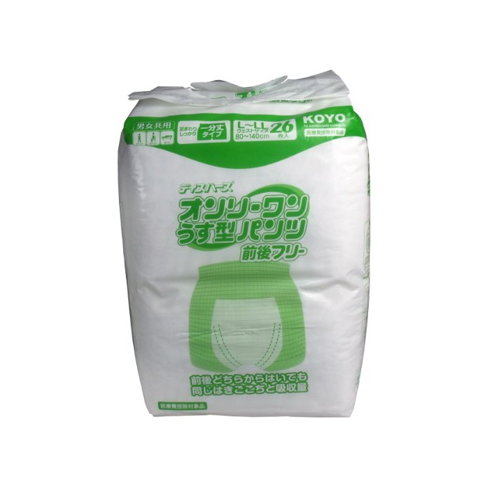 원본상품명: ディスパ?ス オンリ?ワンうす型パンツ 前後フリ? L~LLサイズ 26枚入【ADL?分:一人で?ける方】