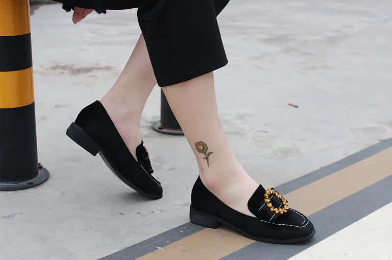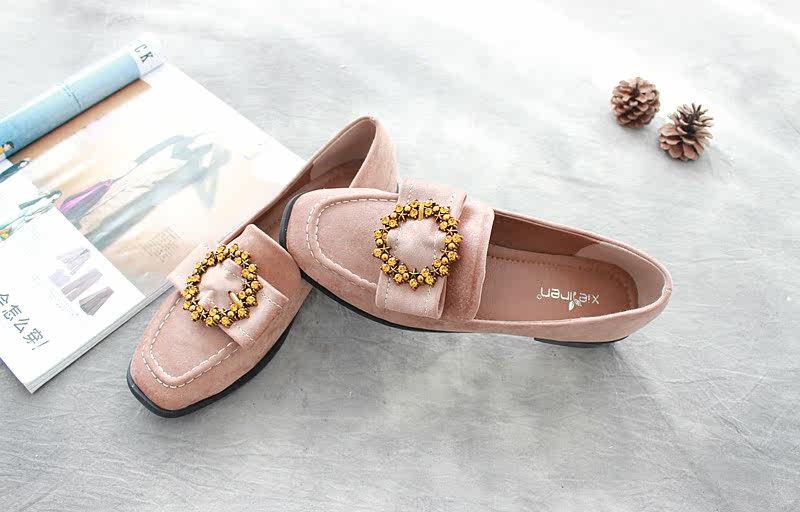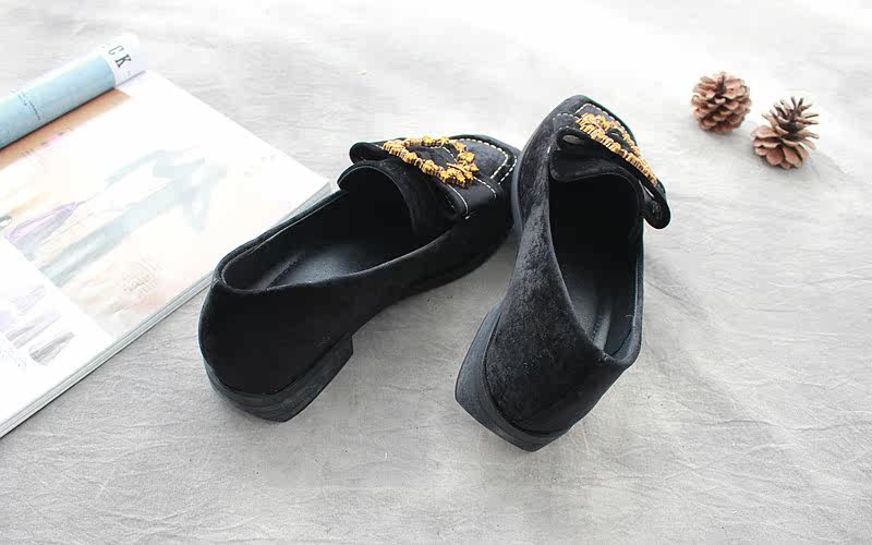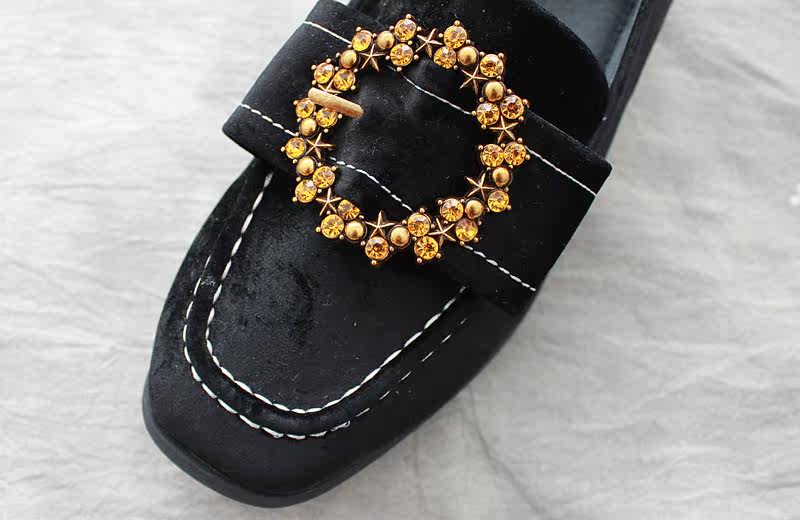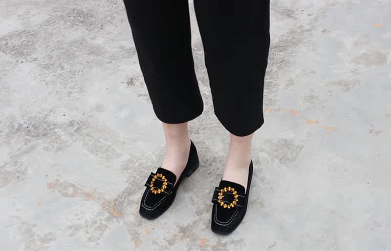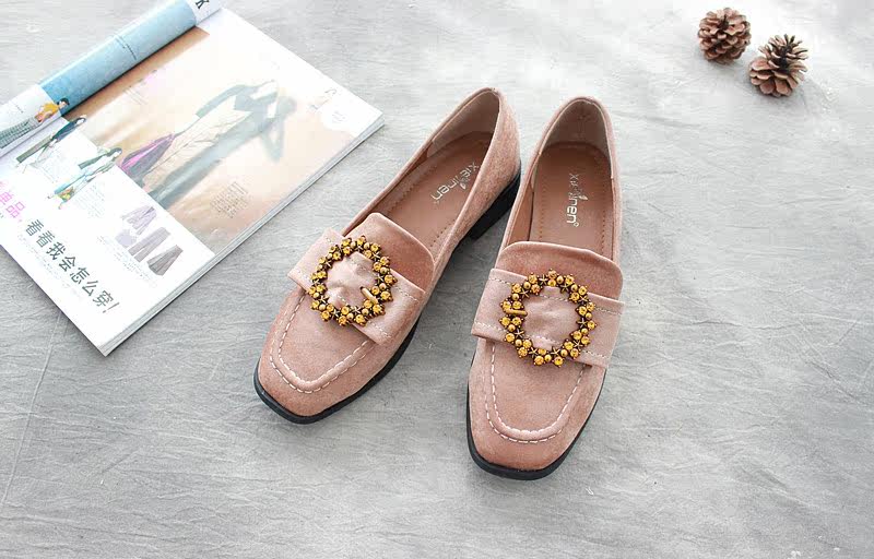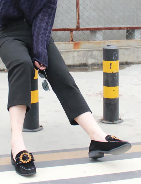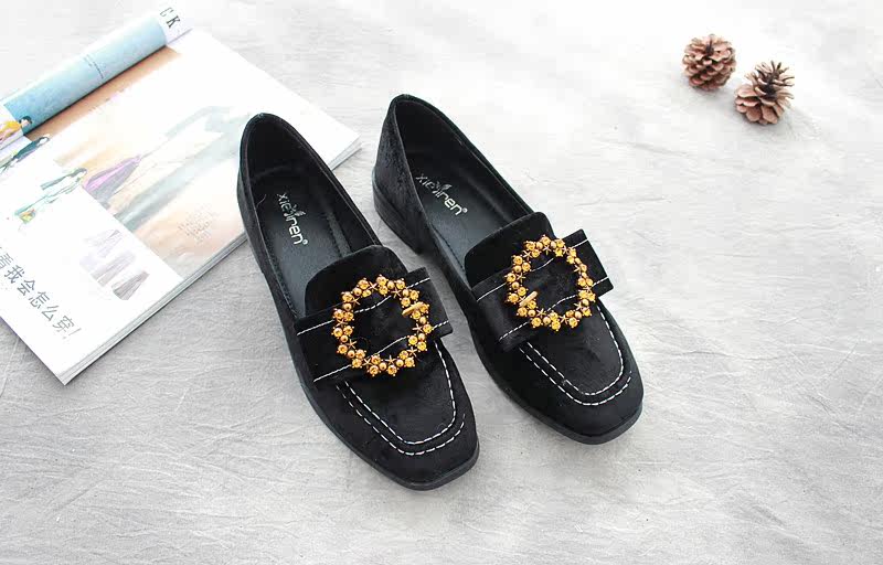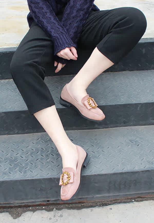 韩版圆扣蝴蝶结单鞋新款复古方头套脚工作鞋休闲鞋低跟乐福鞋女鞋