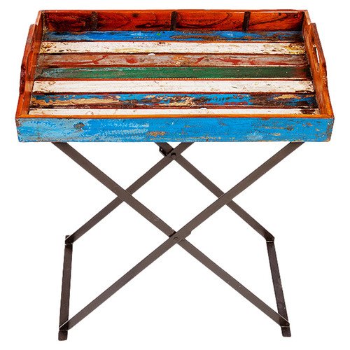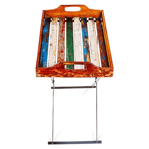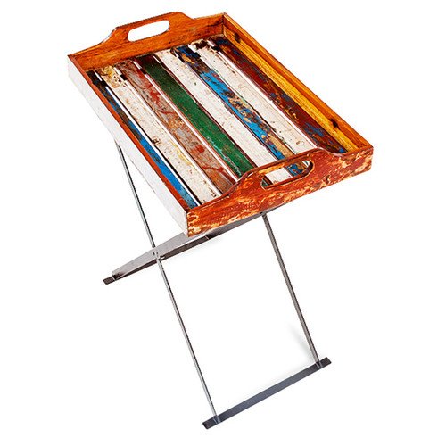- Art deco, colorful, vintage, upcycled, rustic, teak reclaimed wood tray and stand