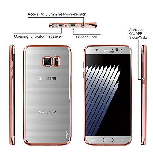 -. Binding : Wireless Phone Accessory -. Brand : Profer -. Feature : Made of shock absorbing, shatterproof Polycarbonate material / This case provides perfect fit and excellent gripping feeling. The case will not get deformed after taking it off and putting it back on multiple times because it is highly flexible and can against bumps / Full protection design covers every corner of your Samsung Galaxy NOTE 7. Raised 0.2mm back cover at Camera cut-out area protects your Samsung Galaxy NOTE 7 camera. / Super-slim design and perfect fit that adds minimal bulk to your smart phone / The protective case can easily be cleaned with water only. It would be refreshed after drying-up -. Label : Profer -. Manufacturer : Profer -. PackageQuantity : 1 -. ProductGroup : Wireless -. ProductTypeName : WIRELESS_ACCESSORY -. Publisher : Profer -. Studio : Profer -. Title : 电镀NOTE 7 Case, Profer [Shock Absorbent] and [Drop Protection] Crystal cute lightweight flip Soft Bumper Rubber Protective Case Cover for Samsung Galaxy NOTE 7 Electroplated Case