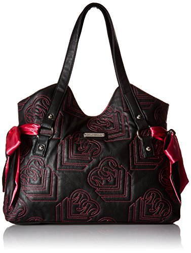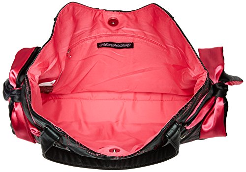 -. Binding : Apparel -. Brand : Metal Mulisha -. Department : womens -. Feature : Black faux leather purse / Heart chevron quilting detail on front / Two-toned side bows, O-rings, circle stud trim, and shiny logo tack on front / Magnetic snap closure and hot pink interior lining / 13.5 inch h x 16 inch w x 5 inch deep strap drop: 9.5 inch -. Label : Metal Mulisha Juniors -. Manufacturer : Metal Mulisha Juniors -. Model : FA6795001 -. PackageQuantity : 1 -. ProductGroup : Apparel -. ProductTypeName : ACCESSORY -. Publisher : Metal Mulisha Juniors -. Studio : Metal Mulisha Juniors -. Title : Metal Mulisha Junior's Shine On Purse