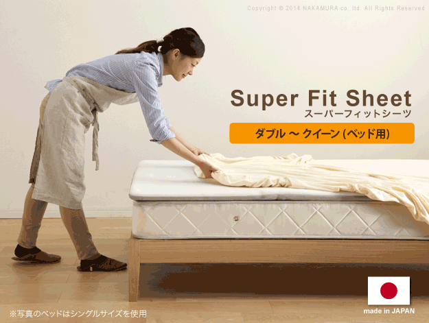 商品について:伸縮性に優れ、幅広いサイズのマットレスに対応できるスーパーフィットシーツ。伸縮性だけではなく吸汗性に優れたニット生地を採用。立体裁断を施すことでシワやヨレを防止。安心の日本製。