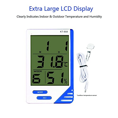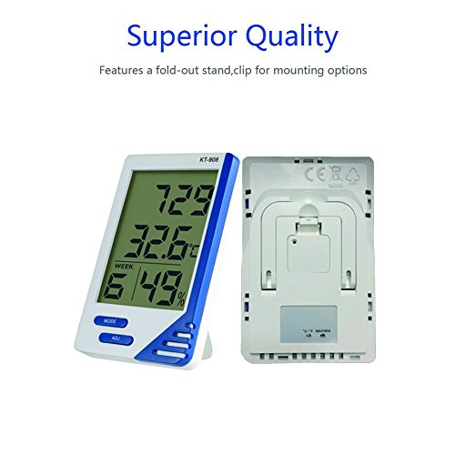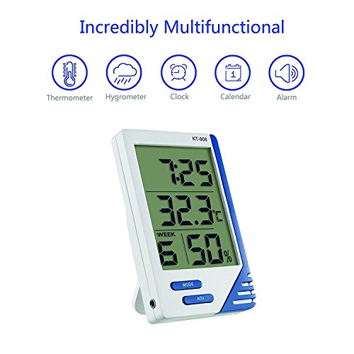 Clock and everyday alarm function, time,calendar and week display,12/24h, °C/°F unit selectable,High accuracy 2~3%RH and ±1°F, and a wide temperature range from -58°F to 158°F (-50°C ~ 70°C)