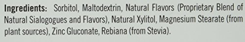 Sorbitol, Maltodextrin, Natural Flavors (Proprietary Blend of Natural Sialogogues and Flavors), Natural Xylitol, Magnesium Stearate (from plant sources), Zinc Gluconate, Rebiana (from Stevia).Directions