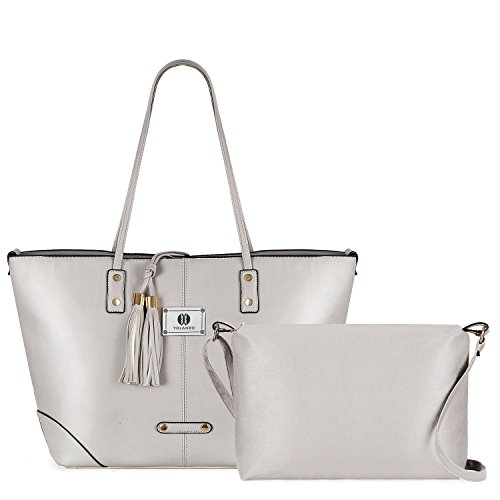 -. Title : Women Faux Leather 2 in 1 Tote Shoulder Bag Set, Tassels Everyday Handbags and Detachable Casual Roomy Daily Work Crossbody Bag