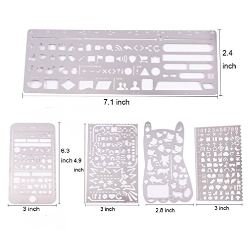 VEVELE 5 pieces stainless steel drawing painting stencils scale template sets graphics stencils for scrapbooking, card and craft projectsPractical and adequate quantitiesCome with 5 different style drafting templates to meet your needs. Every template has bulks of patterns. With neat layout, they look comforting and nice.