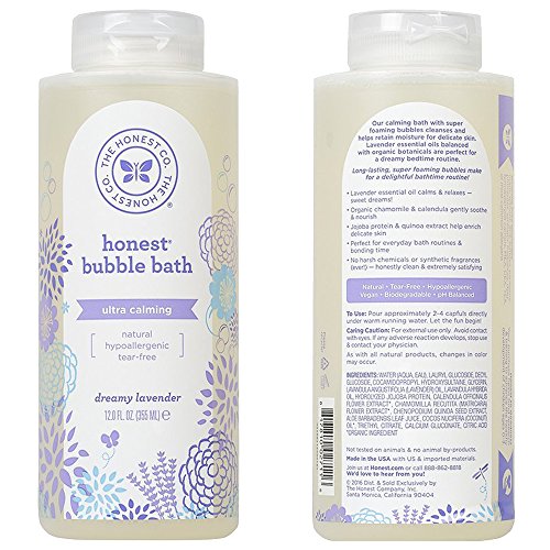 -. Binding : Health and Beauty -. Brand : The Honest Company -. EAN : 0747989307590 -. Feature : Perfect for everyday bath routines and bonding time. / Super foaming bubbles make the most fun bath time routine! / Made without harsh chemicals or synthetic fragrances - honestly clean and extremely satisfying. / Organic chamomile and calendula help gently soothe and nourish while Jojoba protein and quinoa extract help enrich delicate skin. / Tear-Free, Hypoallergenic, Vegan, and pH Balanced -. IsAdultProduct : 0 -. Label : The Honest Company -. Manufacturer : The Honest Company -. MPN : thcbb3 -. PackageQuantity : 1 -. PartNumber : thcbb3 -. ProductGroup : Health and Beauty -. ProductTypeName : HEALTH_PERSONAL_CARE -. Publisher : The Honest Company -. Size : 12 Ounces -. Studio : The Honest Company -. Title : The Honest Company - Perfectly Gentle Hypoallergenic Bubble Bath Variety Pack - 3 Scents, Each 12 Ounce -. UPC : 747989307590