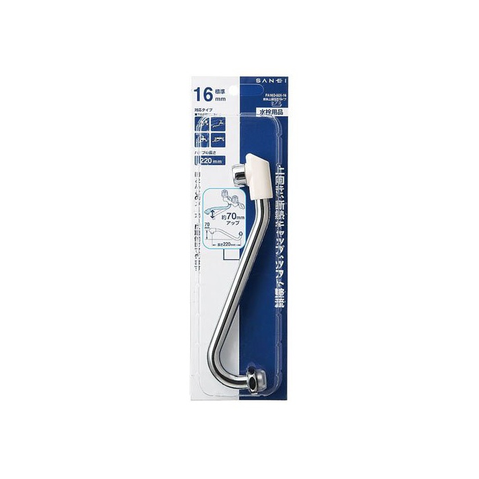 원본상품명: 三水栓 【吐水口の下にスペスが出る熱キャップ付パイプ】 熱上向自在パイプ パイプの長さ220mm PA16D-60X-16