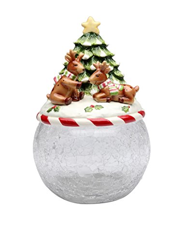 Cosmos Gifts 10638 Reindeer Tree Glass Cookie Jar with Ceramic Lid, 9-3/8-Inch