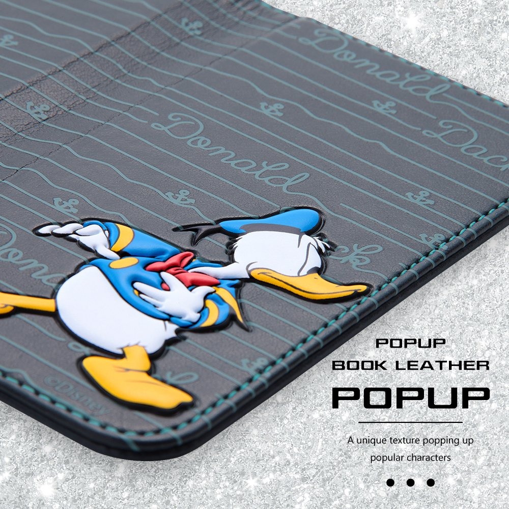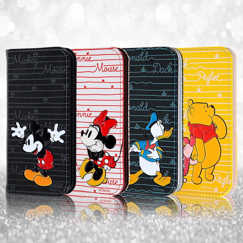 It is a notebook type case that three-dimensionally expresses Disney characters, with the back of the character's name written in cursive.