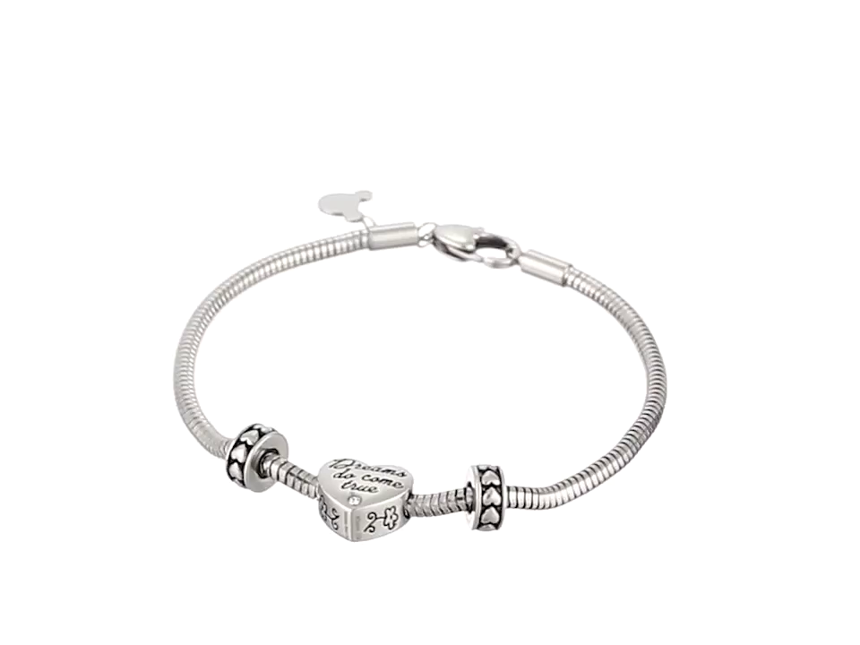 Disney Beads Stainless Steel Charm Bracelet Starter with Bead Charm and Two Stoppers