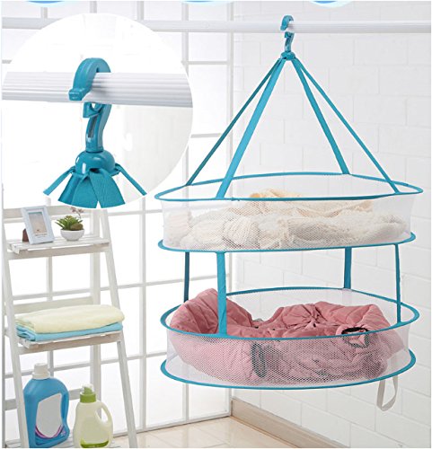 (Adwaita)/Vacuums, Cleaning Storage/Cleaning Supplies/DIRECT FROM USA/Adwaita 2-Tier Folded Mesh hanging clothes dryer Basket and Plant Hang Dryer Net Rack(Φ24" 31.5 H)