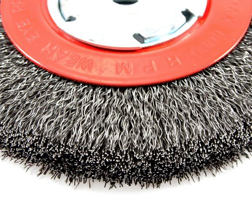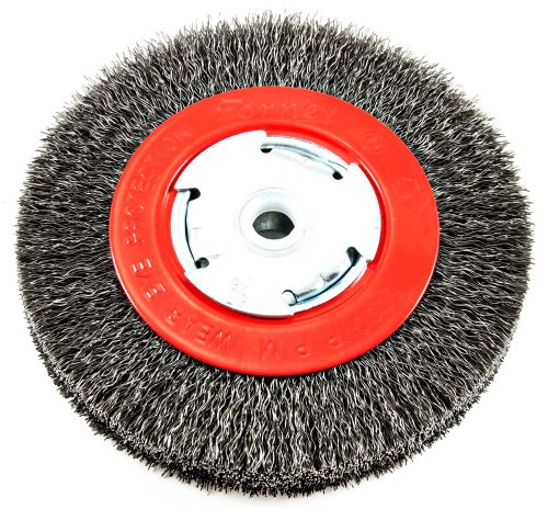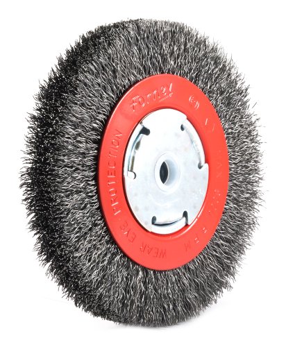 Forney 72752 Wire Bench Wheel Brush, Wide Face Coarse Crimped with 1/2-Inch and 5/8-Inch Arbor, 6-Inch-by-.014-Inch