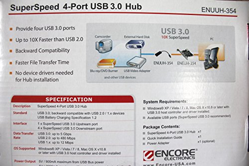 Encore Electronics ENUUH-354 Super Speed 4-Port USB 3.0 Hub