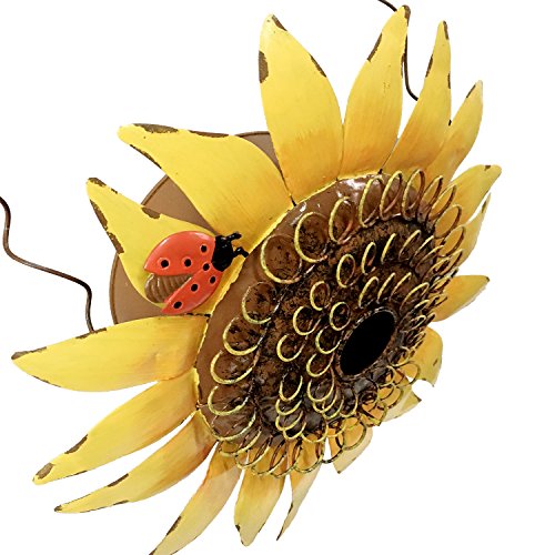 Attraction Design Metal Decorative Sunflower with Ladybug Bird House, 11.5Inch