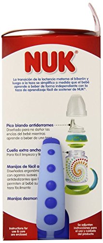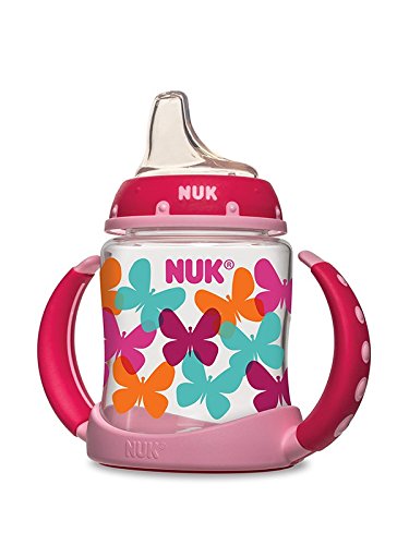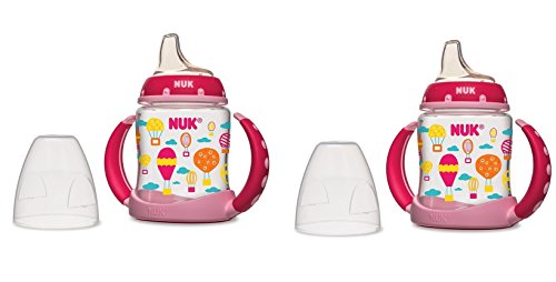 -. Binding : Baby Product -. Brand : NUK -. Color : Girl -. Feature : Helps make the transition from bottle to cup easier / Spill-proof, soft spout is designed to be gentle on gums while teaching baby to drink from a spout / Air vent helps reduce swallowing air / Easy-grip, anti-slip handles are easy for baby to hold and removable as baby ages / Flows easily when sipped; Designed for ages 6-months and up -. Label : NUK -. Manufacturer : NUK -. PackageQuantity : 2 -. ProductGroup : Baby Product -. ProductTypeName : BABY_PRODUCT -. Publisher : NUK -. Size : 5 oz -. Studio : NUK -. Title : NUK Fashion Learner Cup