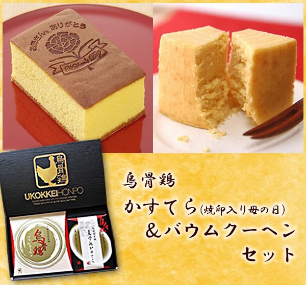 | セット内容 | 烏骨鶏かすてら(母の日の焼印入り)×1、バウムクーヘン×1 |