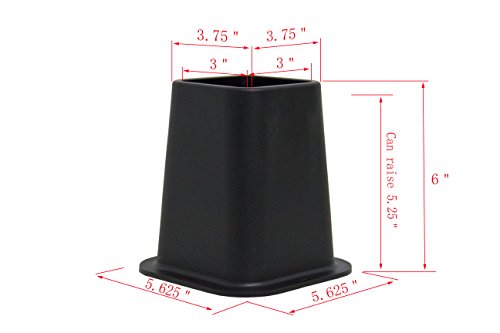Studio : Kings Brand Furniture Publisher : Kings Brand Furniture Product Description Kings Brand Heavy Duty 6-inch Bed Risers Or Furniture Riser, Great for Under Bed Storage, Set of 4. Made of heavy-duty unbreakable plastic; can carry even the heaviest furniture in your home. Adds additional 5.25-inches of height to your bed, riser may be stacked together when not in use. 0
