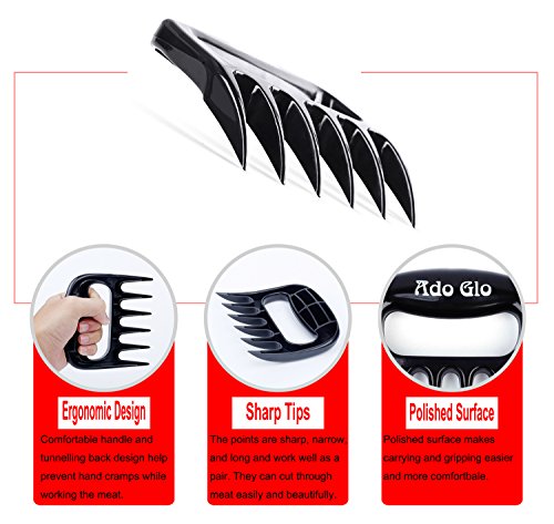 Ado Glo Meat Shredder - 2 Pack Sharp Meat Claws for Shredding, Handling & Carving Meat with 2 Pack Oil Brushes