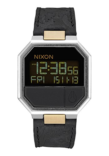-. Title : Nixon - Re-Run Leather Black / Brass unisex digital square watch stainless steel