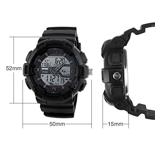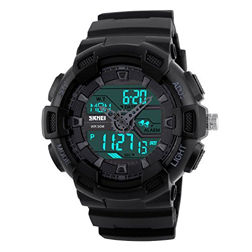 [멋지다]SKMEI 다기능 맨즈 디지탈 손목시계 스포츠 워치 운동 손목시계LCD액정 화면 빅 숫자 방수 야광 표시(블랙)