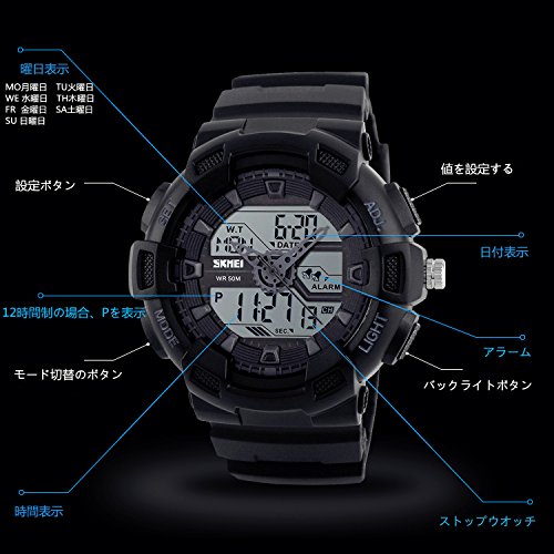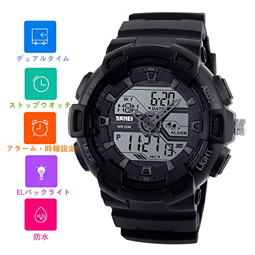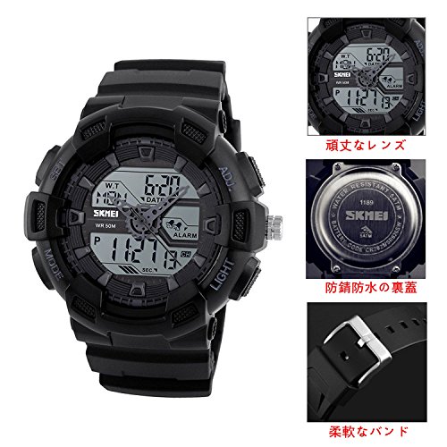 원본상품명: [カッコイイ]SKMEI 多機能メンズデジタル腕時計 スポ?ツウォッチ 運動腕時計LCD液晶?面 ビッグ?字 防水夜光表示(ブラック)