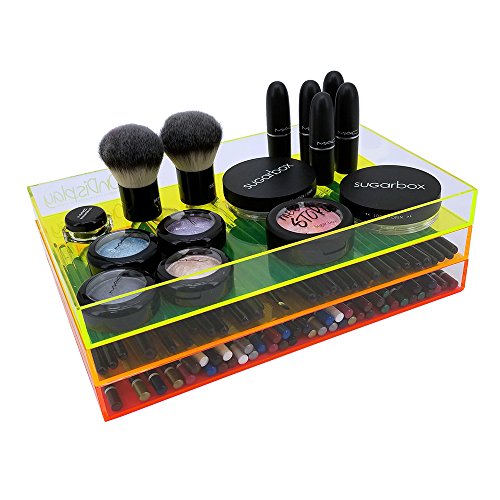 -. Title : OnDisplay Electric Neon Luxe Clear Acrylic Stackable Cosmetic/Jewelry Tray - Stack of 3