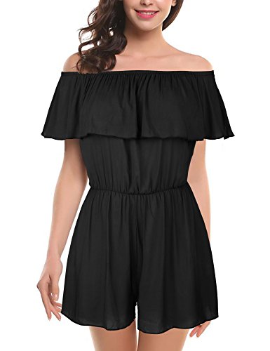 Style: Off shoulder Neck, Sleeveless, Elastic waist,Solid Jumpsuit