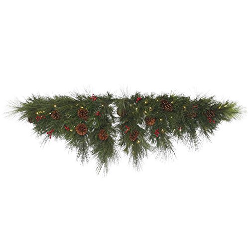 Vickerman G154212LED Big Cascade Pine Swag with 296 PVC Tips, Pinecones, Berries & 100 LED Italian Single Mold Lights On Wire, 72", Warm White/Green