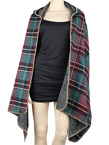 -. Feature : Two button shawl cardigan / Classic plaid pattern / Women's Plus Size Buffalo Plaid Cape / Plaid cloak with hood scarf warm blanket scarves wrap stole / Plus Size cardigan pashminas shawls wrap
