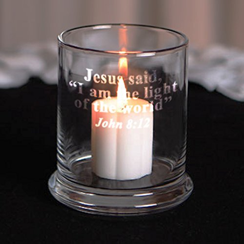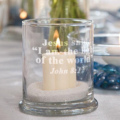 Glass Candle Holder Engraved with Bible Verse Prayer Religious Gift