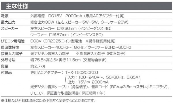 TVに接続して臨場感のある重低音を再生するテレビ用スピーカー。