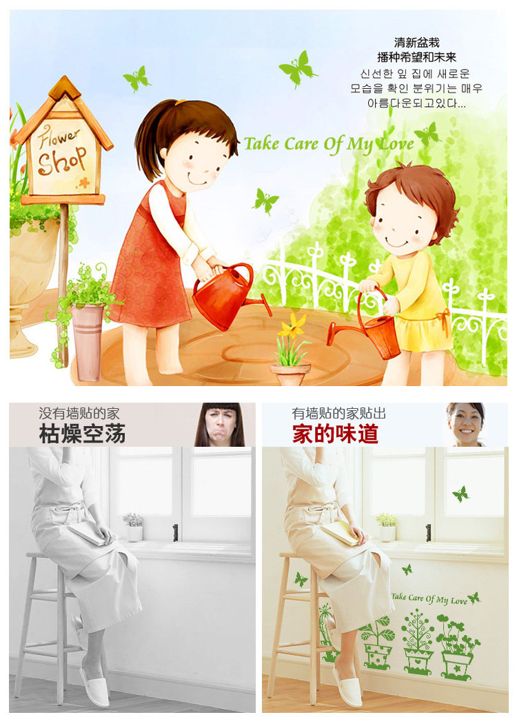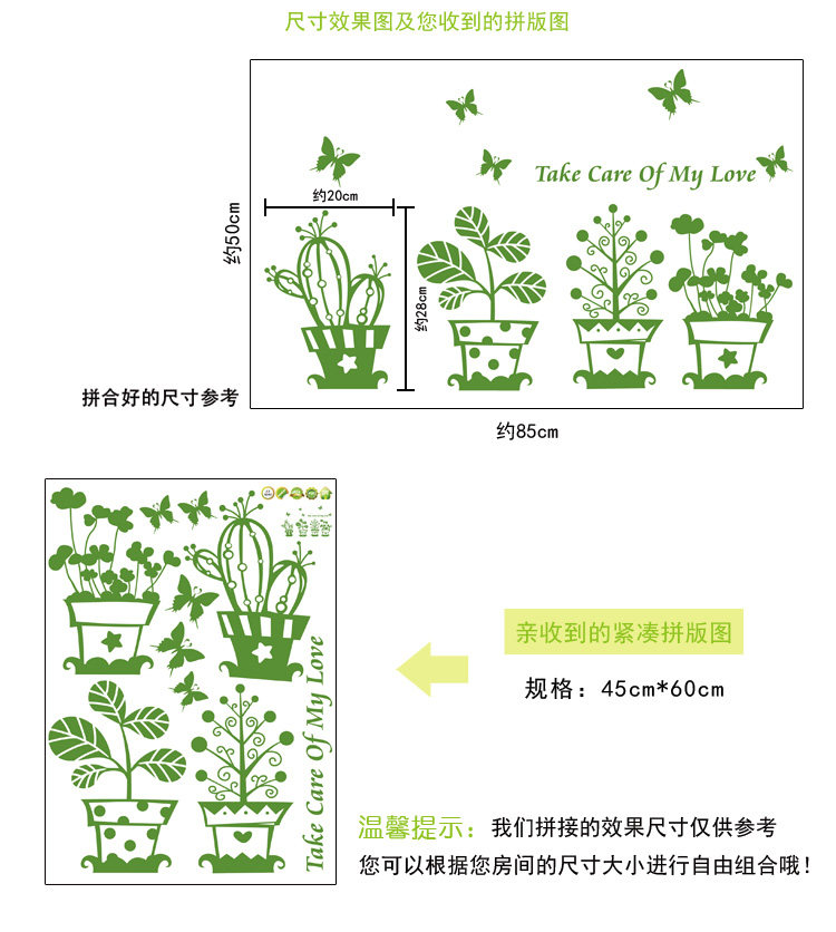 可移除墙贴纸/盆栽/绿色植物墙贴画墙纸贴客厅卧室墙壁贴纸装饰