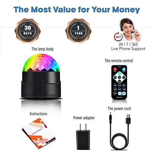 High Quality and Warranty: The LED have a lifespan of over 20000 hours. Each disco ball has been checked for defects by our quality assurance before shipment. The delivery is, of course, a remote control as well as a manual written in English, which is supported by many pictures.