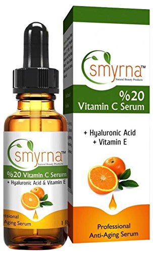 Smyrna professional anti-aging skin moisturizing 20% vitamin c serum 1 fl. oz. / 30ml all natural and organic ingredients cruelty free, does not contain alcohol, parabens safe for all skin types highest form of stabilized bio-available vitamin c for beautiful skin, combined with vitamin e and vegan hyaluronic acid for extra powerful anti-aging effects. Get years back on your skin. You'll get so many compliments soon.Feature