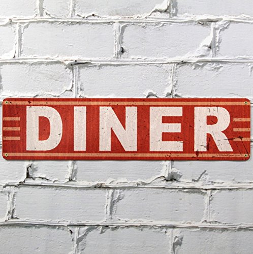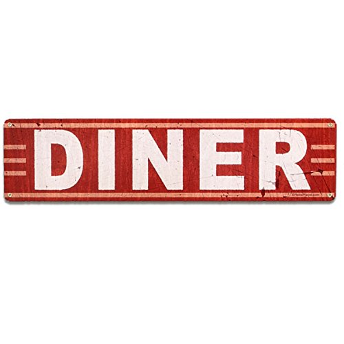 Diner Wide Red Distressed Medium Vintage Kitchen Metal Sign 20 x 5
