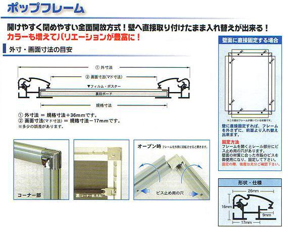 メッキ調のコーナー金具が広告等を引き立てるアルミ製フロントオープンパネルです。類似品に比べて低価格が特徴です。