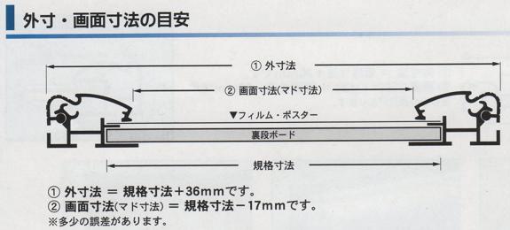仕様外寸法:規格寸法+36mm、画面寸法(マド寸法):規格寸法-17mm