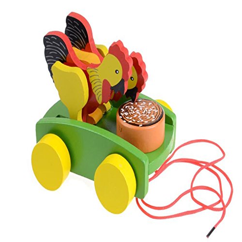 -. Feature : Novel Design: Two lovely chicks are eating rice on wooden cart as soon as you pull it. / Preschool Toy: The interesting pull toy can train child's the ability of walking. / Perfect Gift: It's a best gift for toddlers on his birthday,Christmas,Children's Day and any occasion. / Baby Safe: The wooden pull cart is made of safe wooden and non-toxic paint. Recommended age range 1 years and up. / Random Color: Blue Wheel / Yellow Wheel. Package included:1 X Plush Toy. Size:Length5.11",Width4.52",Height4.33".