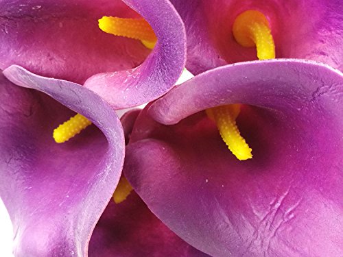 Faux Latex Flower Real Touch Artificial Calla Lily Flower Bouquet Wedding Party Home Garden Restaurant Decoration - Bunch of 10 (Plum Purple)