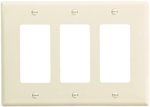 The Eaton PJ263W Mid-Size 3-Gang Decorator Switch Wallplate is constructed of polycarbonate for less breakage .The exclusive timesaving screw-catch holds mounting screws captive and makes for a quick installation. This polycarbonate wallplate has a flush-fitting, warp resistant design. Matching mounting screws are included. This wallplate is cULus listed and comes in a white finish. The Eaton PJ263W Mid-Size 3-Gang Decorator comes with a 2-year limited warranty that protects against defects in material and workmanship. Eaton offers innovative wiring solutions that increase productivity, energy efficiency and safety on the jobsite and at home. Their expansive offering includes code compliant devices for single and multi-family homes or residential development projects. Eaton has been a trusted name in electrical products for over 175-years and is headquartered in Peachtree, GA and has international manufacturing and distribution facilities.Feature