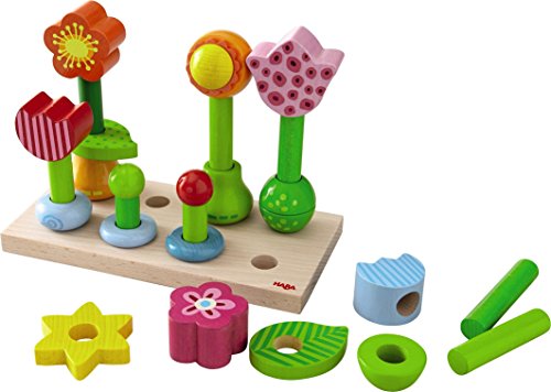 Your "budding" florist will love playing with this flourishing Flower Garden pegging game! Promotes creativity and motor skills by allowing the flowers to be stacked in tons of different design combinations! Made in Germany of solid beech wood and contains 25 parts and one board.