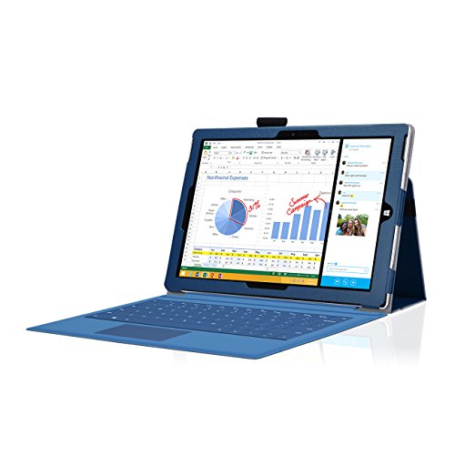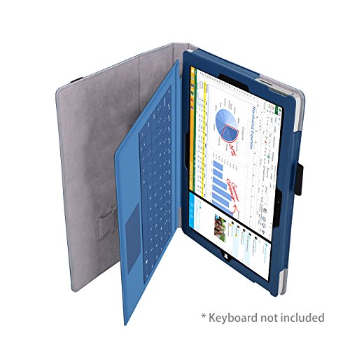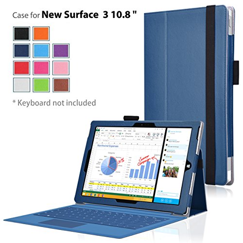 Surface 3 Case - onWay Folio Case Cover for Microsoft Surface 3 Tablet 10.8 Inch Premium Leather Cover Case with Stylus Holder (for Surface 3, Dark Blue)