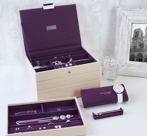 Stackers Cream & Purple Classic Deep Open Section Jewelry Box