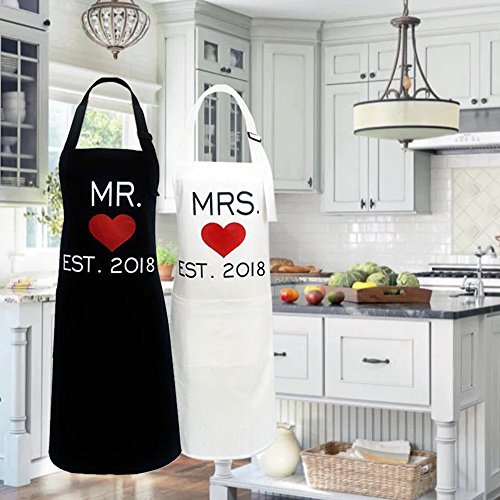 Mr. and Mrs. Aprons 2018 Wedding Newlywed Couples Aprons Funny Kitchen Cooking Bibs Gifts His and Hers Sets (2018)