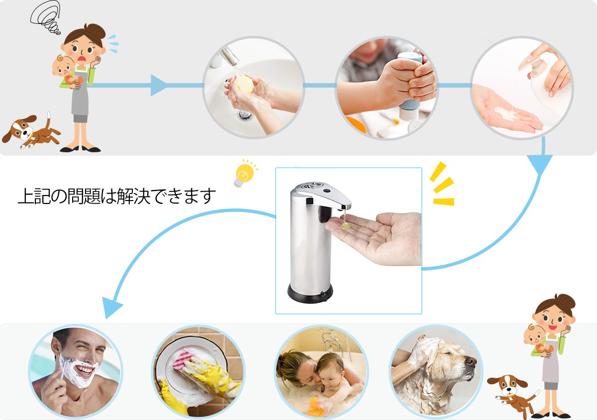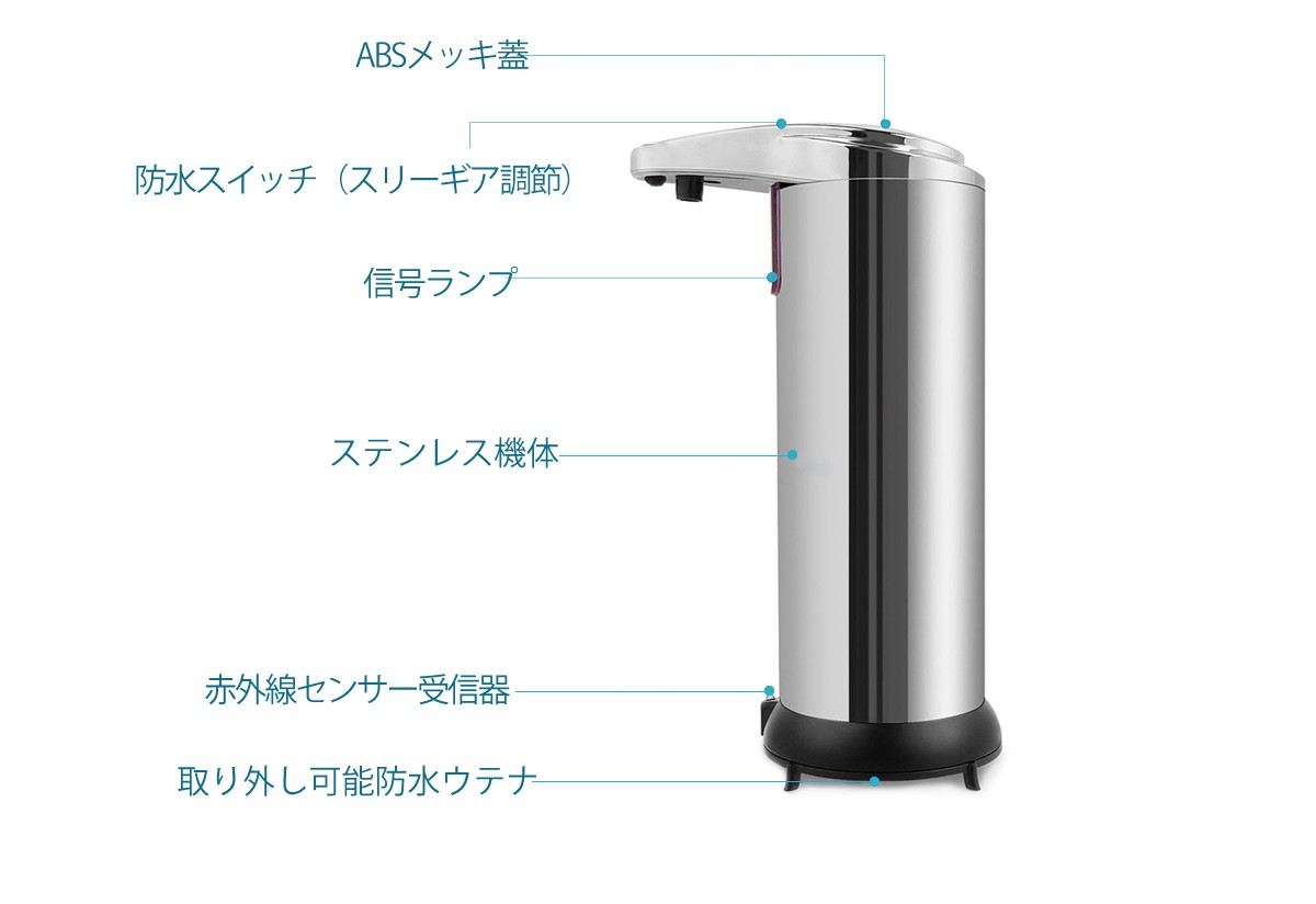 ※赤外線センサーを採用し、強い光で、自動的にソープが出てくるため、直射日光の当たる場所には置かないでください。