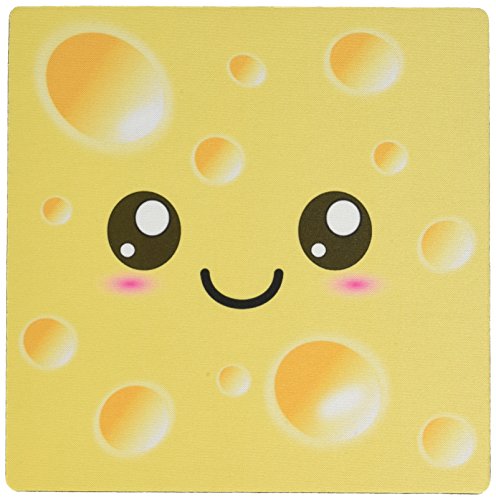 3dRose Cute Kawaii Happy Yellow Swiss Cheese with Holes a Smiley Face and Rosy Cheeks Adorable Foods Mouse Pad (mp_58324_1)