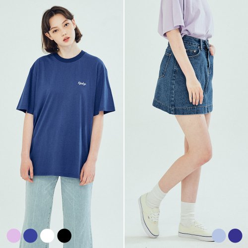 프로젝트 624(PROJECT 624) (SET) 킨쿠 베이직 자수 티셔츠 데님 스커트 (6COLOR)