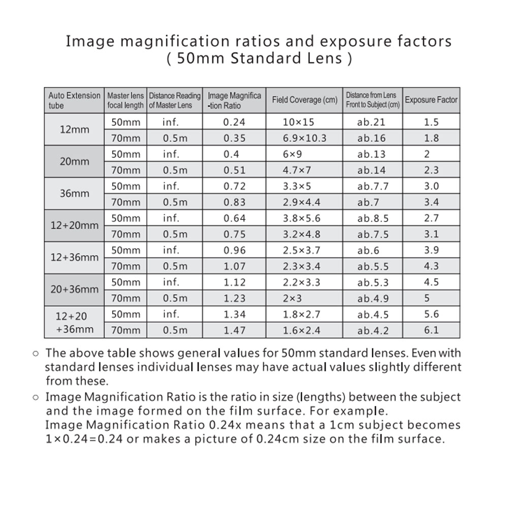 Combined with 3 tubes in different length: 12mm, 20mm & 36mm, can be used in any combination or individually to obtain the different magnification.